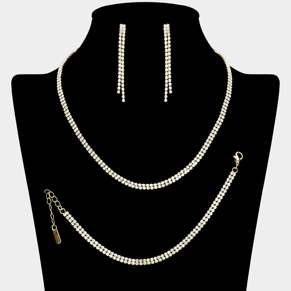Rhinestone Paved 2-Row Necklace Jewelry Set