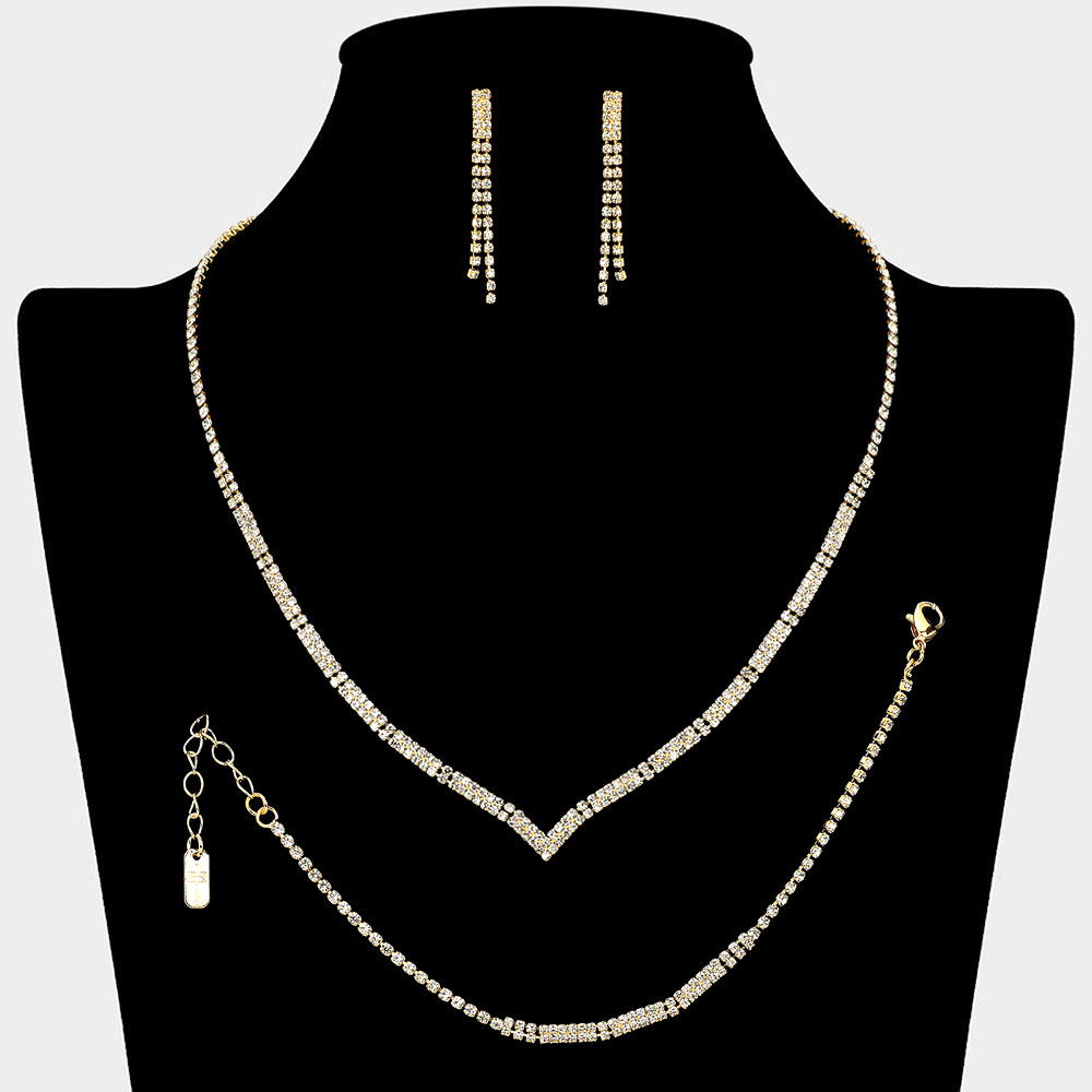 Rhinestone Paved Bar Link V Shaped Jewelry Set