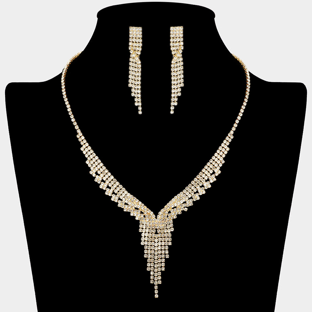 Rhinestone Paved Fringe Accent V Shaped Necklace