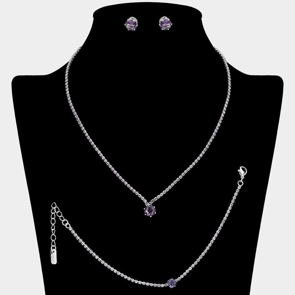 Round CZ Stone Accent Rhinestone Paved Jewelry Set