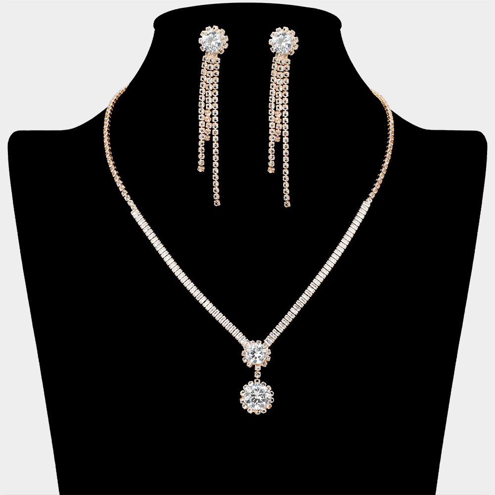 Round CZ Stone Cluster Pointed Rhinestone Paved Necklace