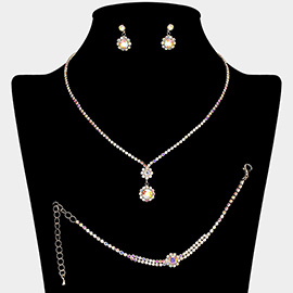 Round Stone Pendant Accented Rhinestone Paved Jewelry Set