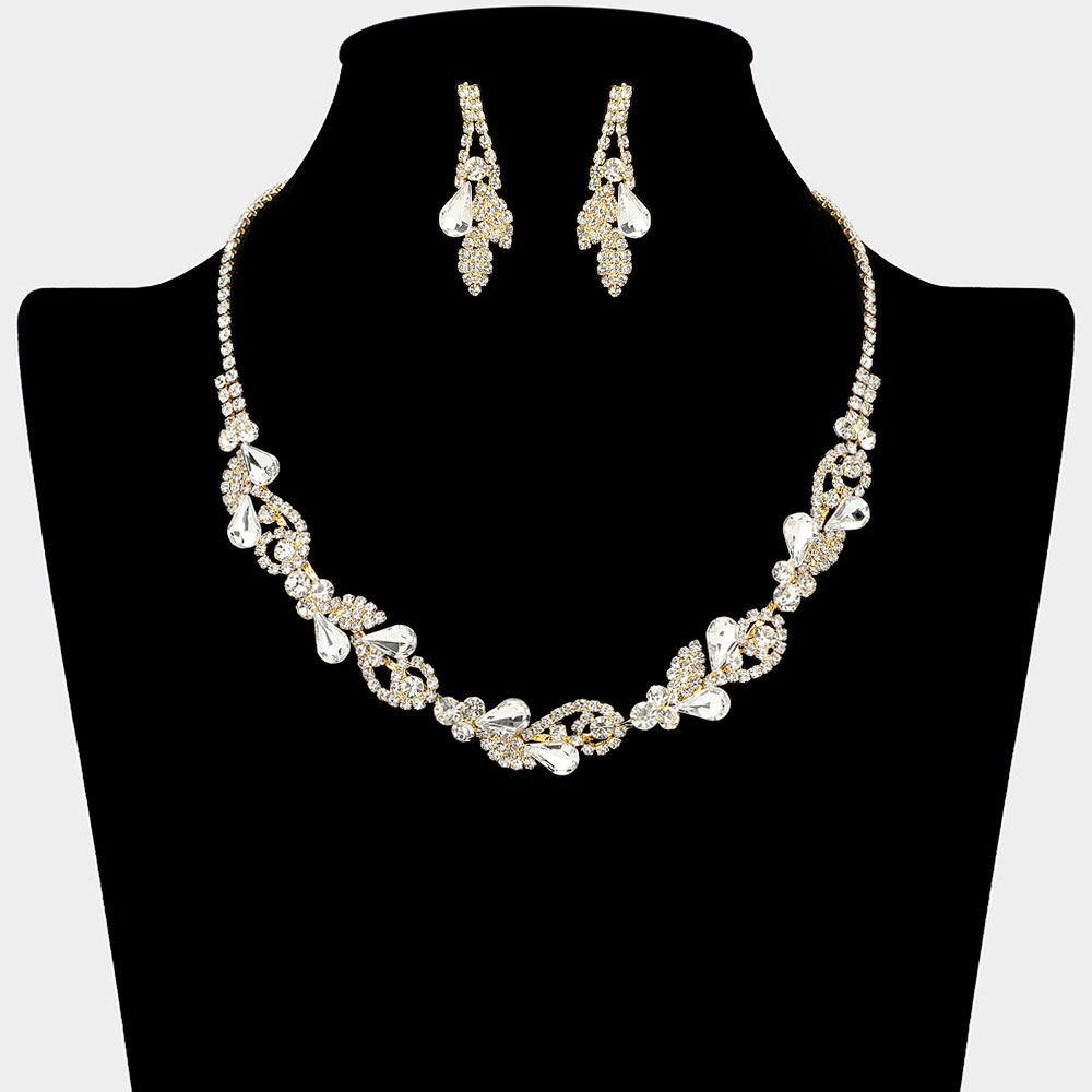 • Elevate your elegance with this leaf cluster necklace and earring set. Designed with intricate details and shimmering stones, it offers a graceful blend of sophistication and sparkle. Ideal for weddings, evening events, and celebrations, it adds a radiant finishing touch to any ensemble.