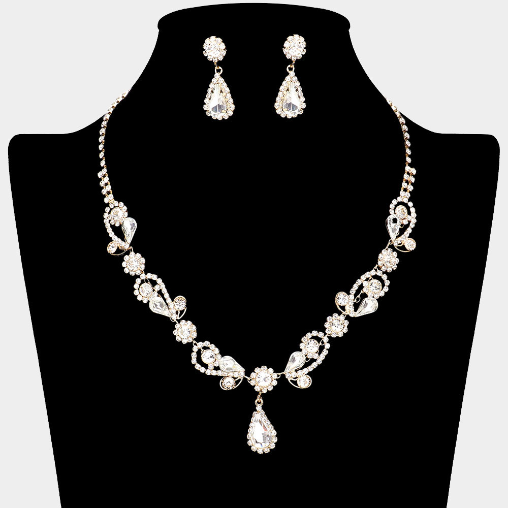 Teardrop Stone Cluster Pendant Pointed Rhinestone Paved Jewelry Set