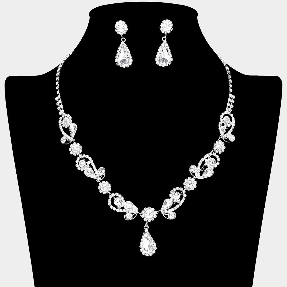 Teardrop Pendant Flower Pointed Rhinestone Paved Necklace