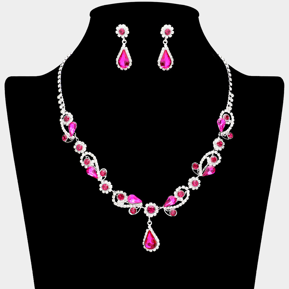 Teardrop Pendant Flower Pointed Rhinestone Paved Necklace