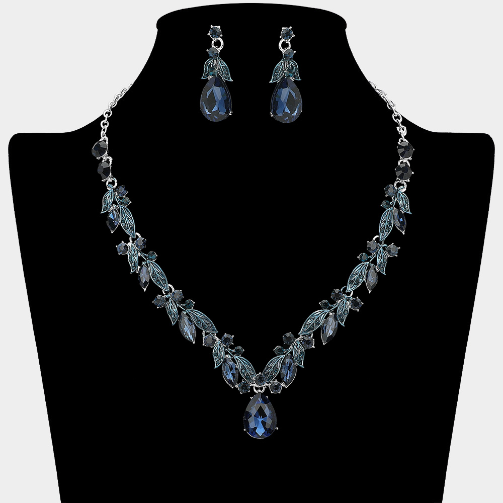• Chic jewelry set featuring a teardrop pendant necklace with matching earrings, perfect for weddings, proms, and evening occasions. Designed to add refined sparkle and sophistication to bridal or formal attire.