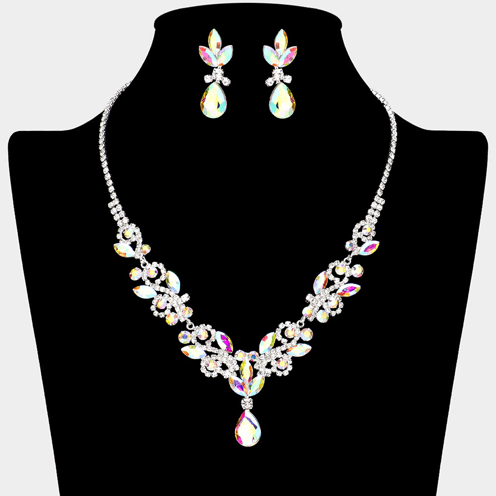 Teardrop Stone Cluster Pendant Marquise Stone Cluster Rhinestone Paved Necklace