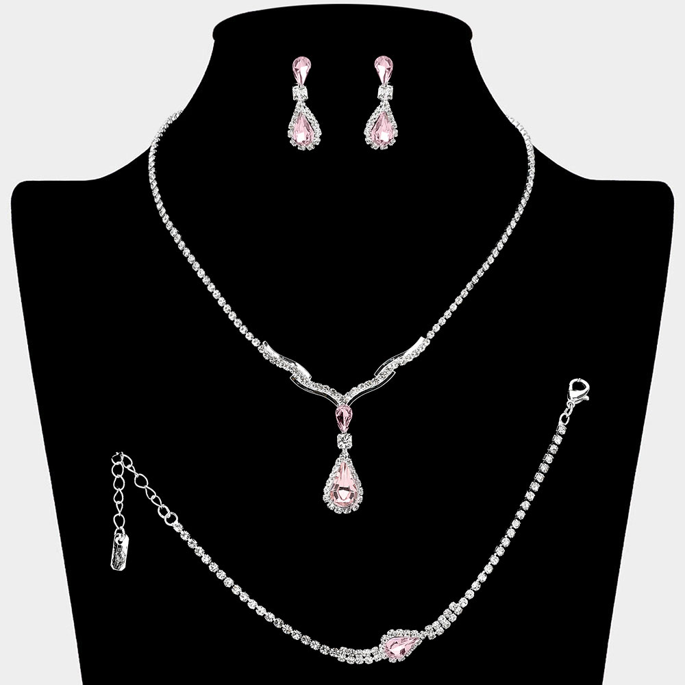 Teardrop Stone Pendant Accent Rhinestone Paved Jewelry Set
