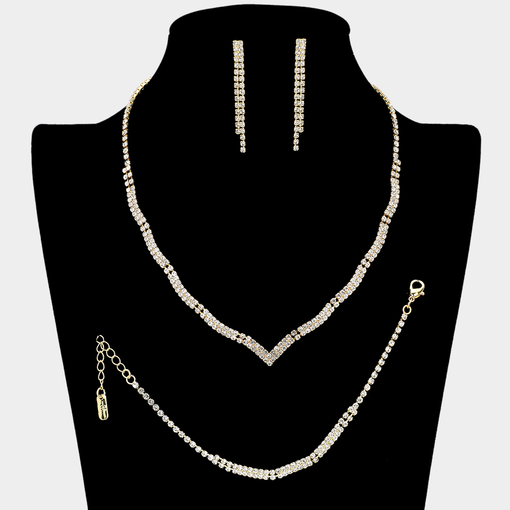 Wavy Rhinestone Paved Jewelry Set