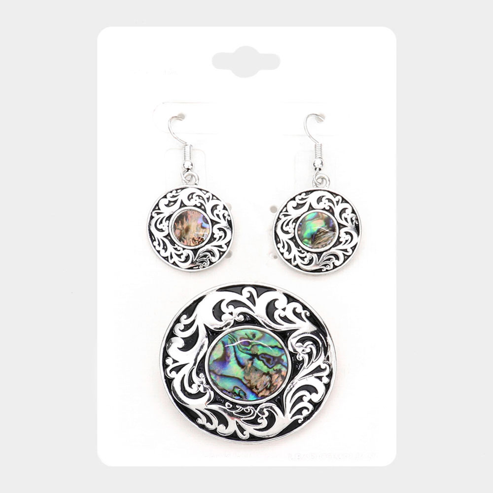 Rhinestone Embellished Abalone Heart Triangle Quatrefoil Pendant Necklace