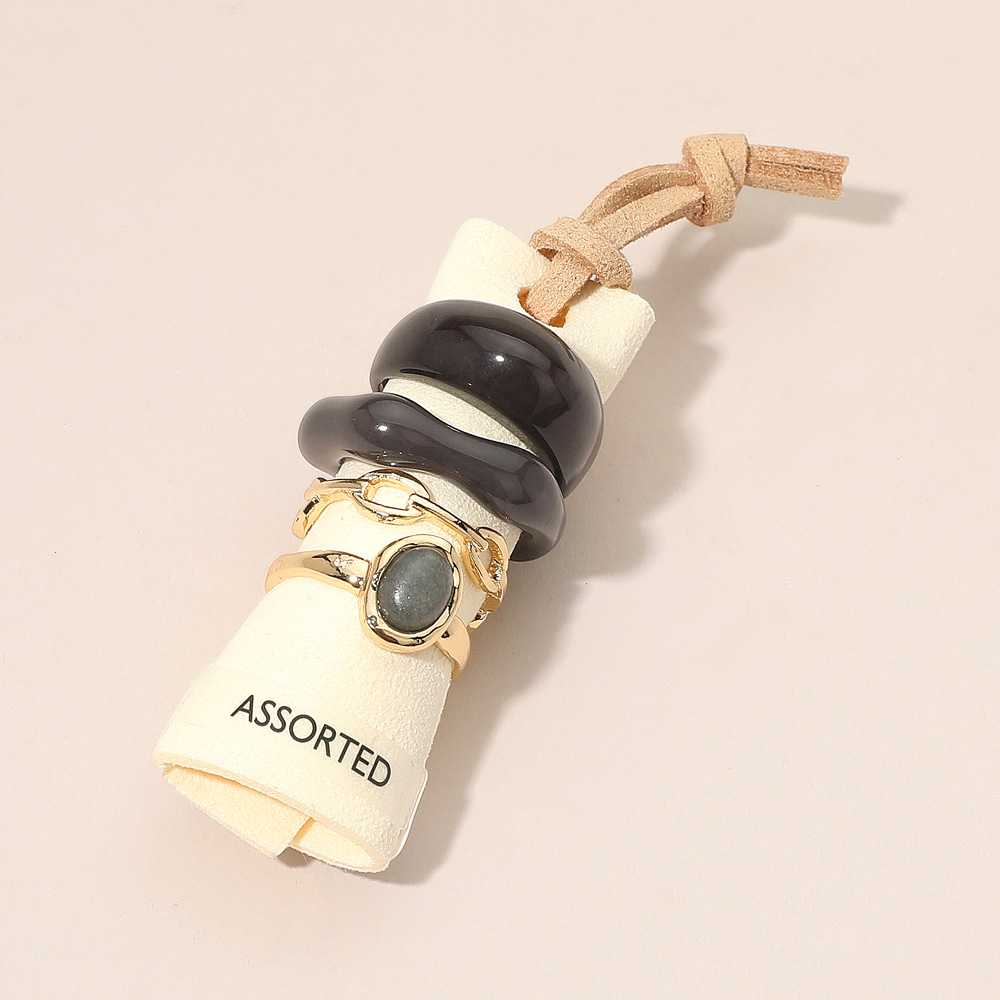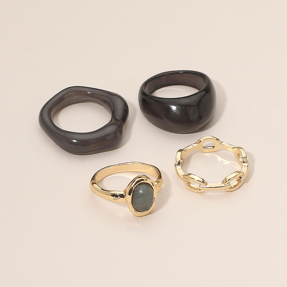 Details • Size : 0.25", 0.4", 0.5" H (Size 7) • Add a statement touch to your jewelry collection with this bold multi-ring set featuring smooth chunky bands, a striking gemstone centerpiece, and a unique chain-inspired design. Perfect for stacking or wearing solo, these rings bring contemporary elegance to any look.