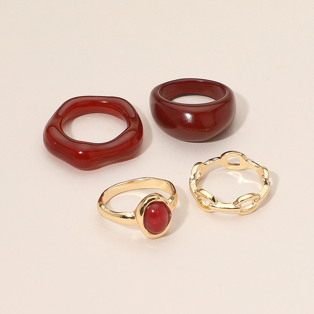 • Add a statement touch to your jewelry collection with this bold multi-ring set featuring smooth chunky bands, a striking gemstone centerpiece, and a unique chain-inspired design. Perfect for stacking or wearing solo, these rings bring contemporary elegance to any look.