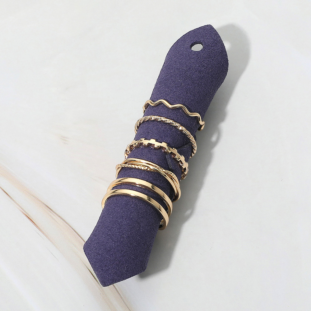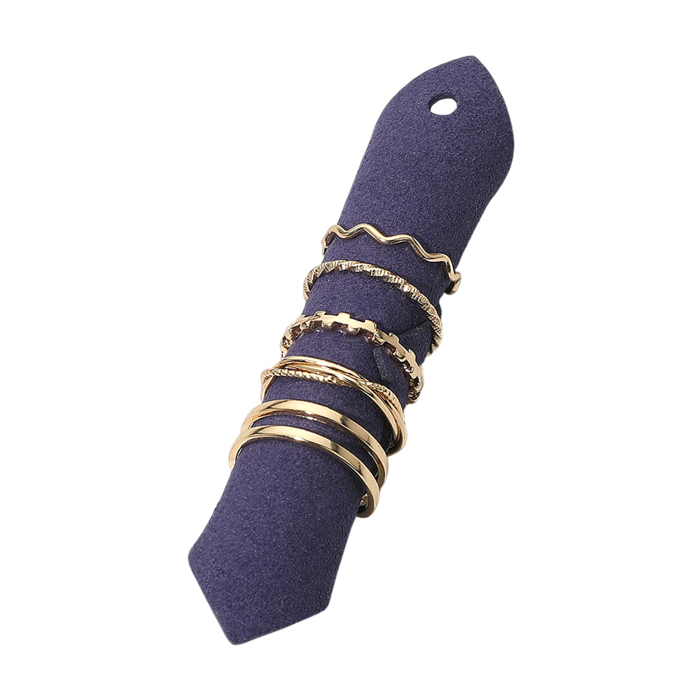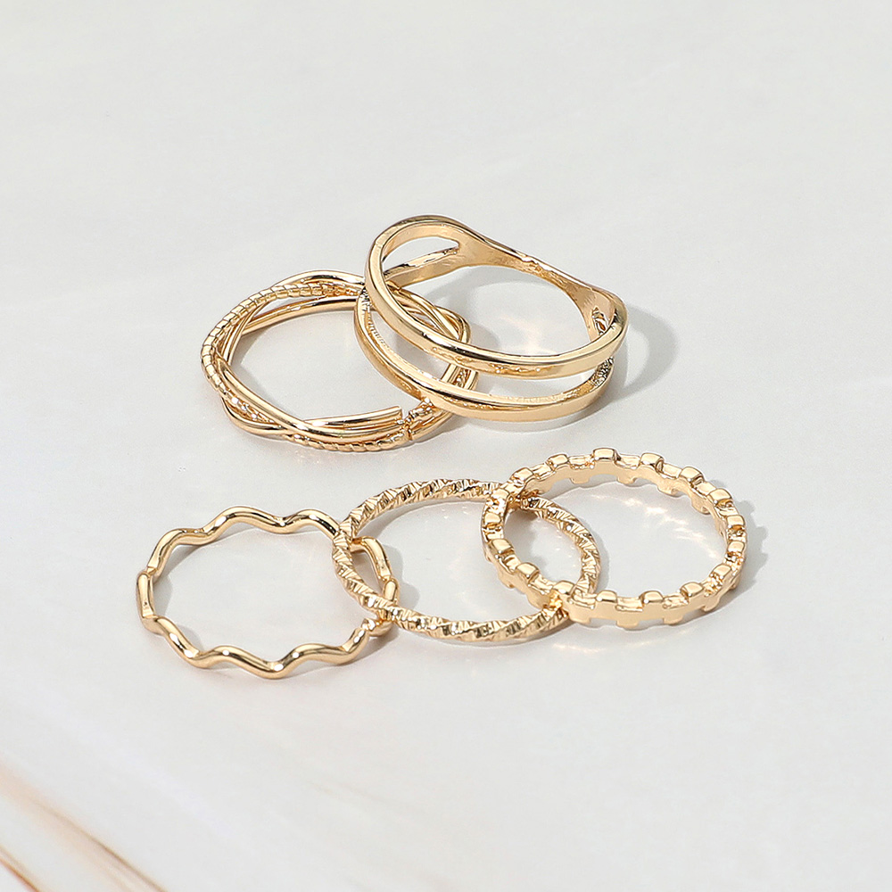 Details • Size : 0.1" - 0.3" H • Size 7 Only • This set of five stackable rings features a variety of minimalist designs, from wavy and textured bands to sleek, smooth styles. Perfect for layering or wearing alone, they offer versatile elegance that complements both casual and sophisticated outfits. • Lead and Nickel Compliant