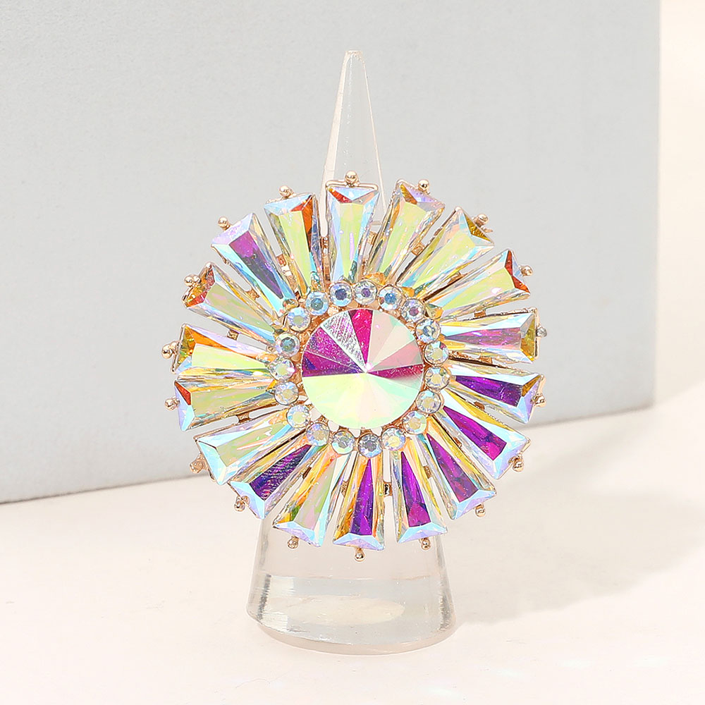 • Bold sunburst statement ring featuring a faceted center and radiant surrounding accents for dramatic sparkle and eye-catching impact. Ideal for parties, special occasions, gifting, or elevating everyday looks with a glamorous focal piece that delivers standout style and confidence.