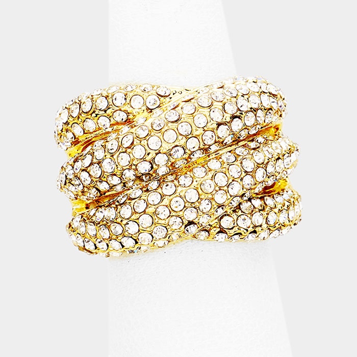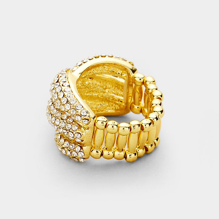 Crystal Rhinestone Pave Crisscross Stretch Ring