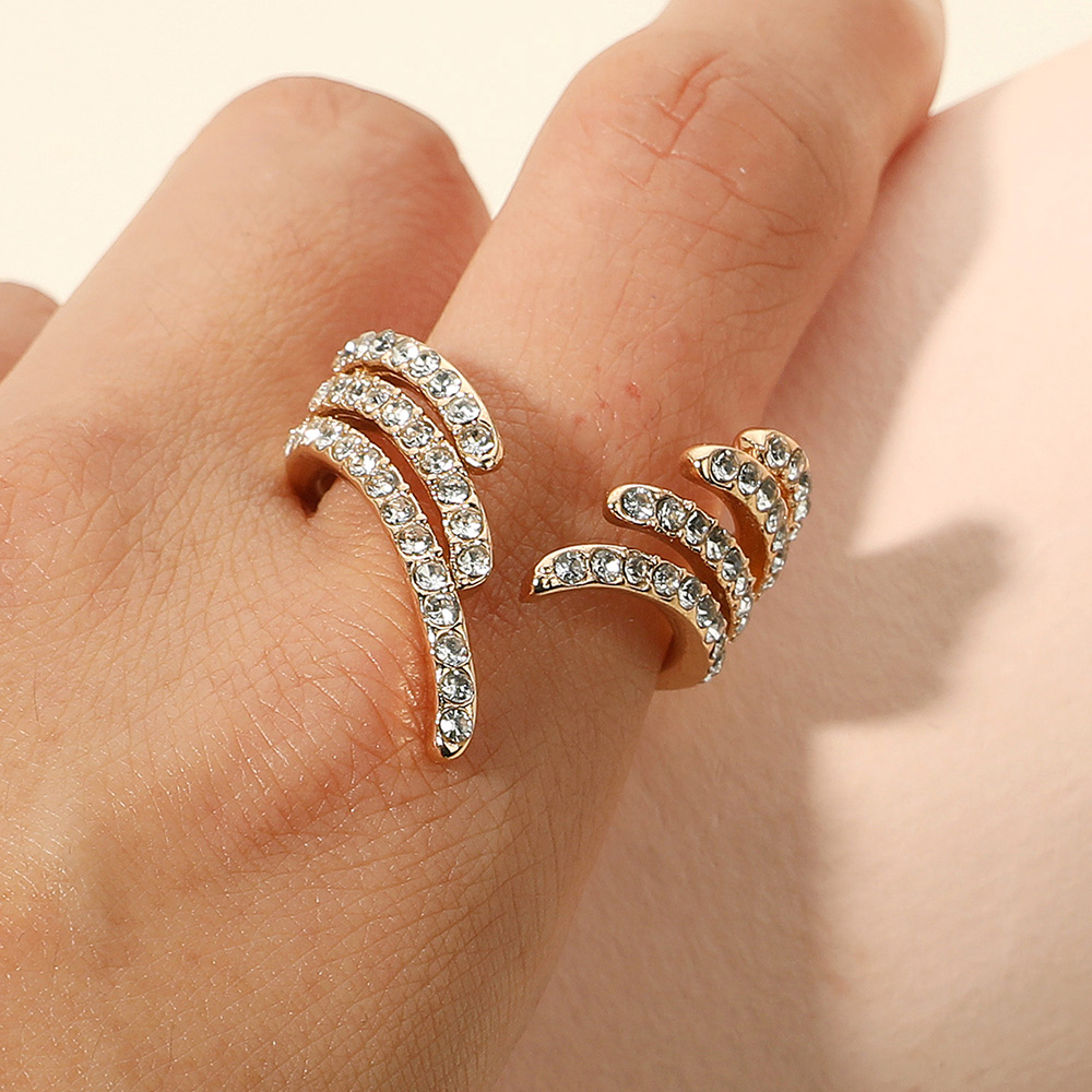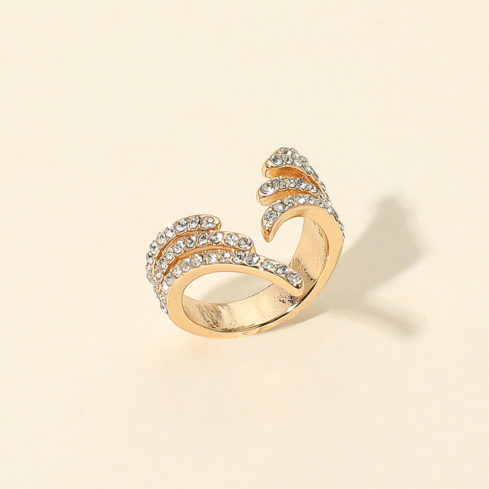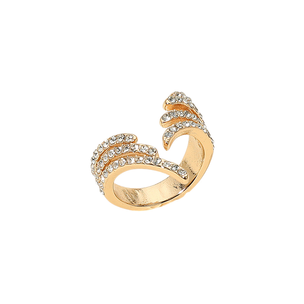 Details • Size : 1" H • Adjustable • An elegant adjustable ring featuring wave-like curves lined with sparkling crystals. Lightweight and stylish, this ring adds a glamorous touch, perfect for both casual looks and evening wear. • Lead and Nickel Compliant • Stainless Steel