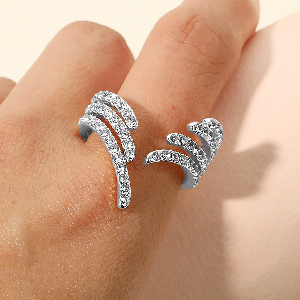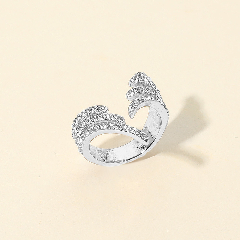• An elegant adjustable ring featuring wave-like curves lined with sparkling crystals. Lightweight and stylish, this ring adds a glamorous touch, perfect for both casual looks and evening wear.