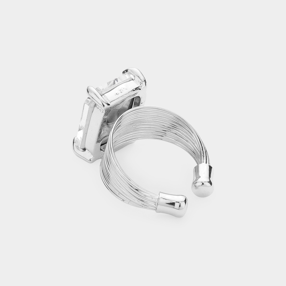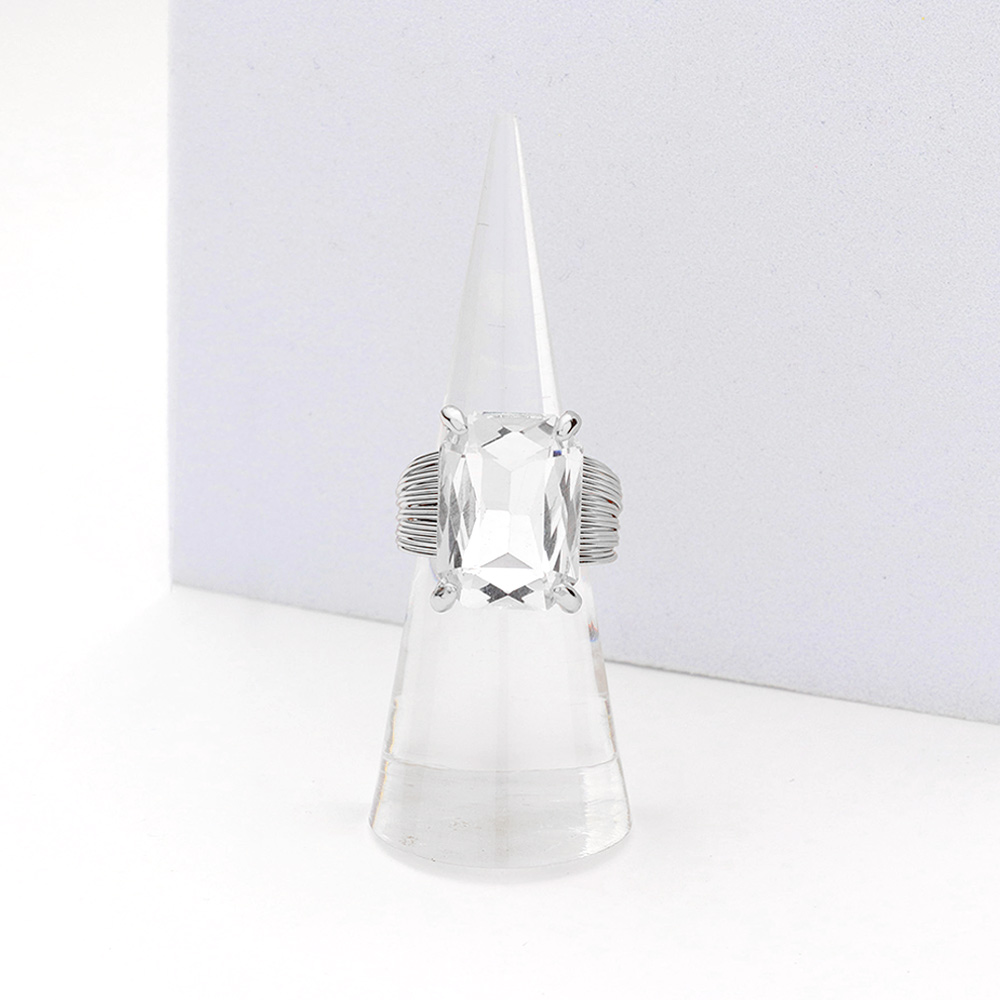 Details • Size : 0.5" X 0.7" • Adjustable • Make a bold impression with this rectangular stone cocktail ring, featuring a faceted centerpiece set in a textured band. A perfect balance of sophistication and edge, ideal for elevating both casual and evening looks. • Lead and Nickel Compliant