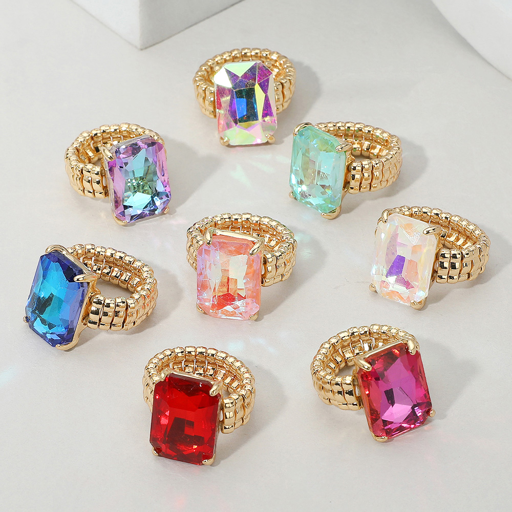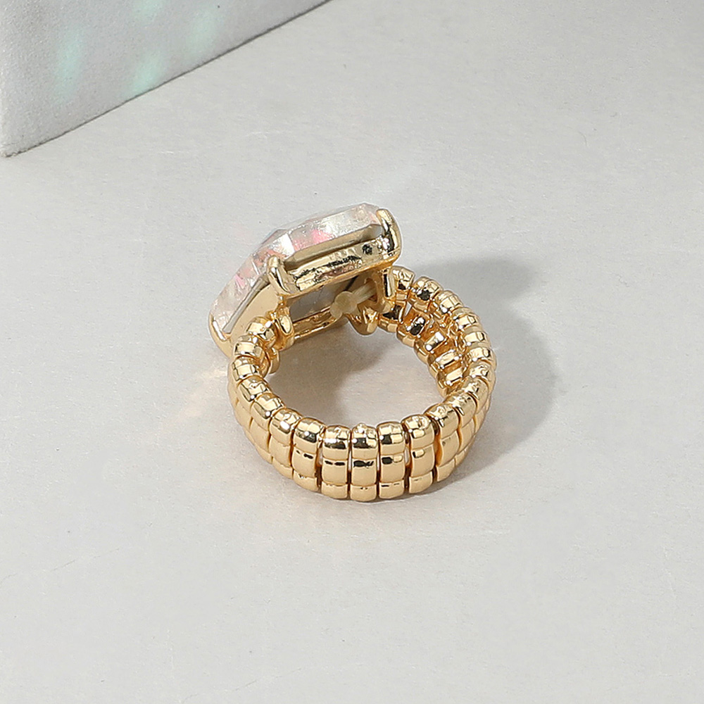 Faceted Emerald Cut Stone Cluster Stretch Ring Faceted Emerald Cut Stone Cluster Stretch Ring Faceted Emerald Cut Stone Cluster Stretch Ring