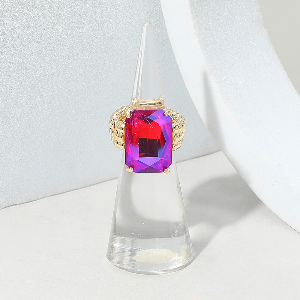 • Make a bold impression with this statement ring, featuring a faceted emerald-cut center stone set on a textured band. Combining elegance with modern design, it’s perfect for adding refined style to both everyday outfits and special-occasion looks.