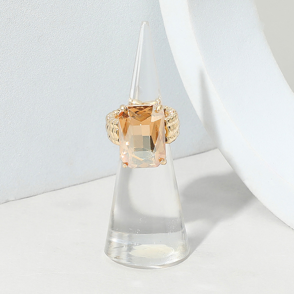 • Make a bold impression with this statement ring, featuring a faceted emerald-cut center stone set on a textured band. Combining elegance with modern design, it’s perfect for adding refined style to both everyday outfits and special-occasion looks.