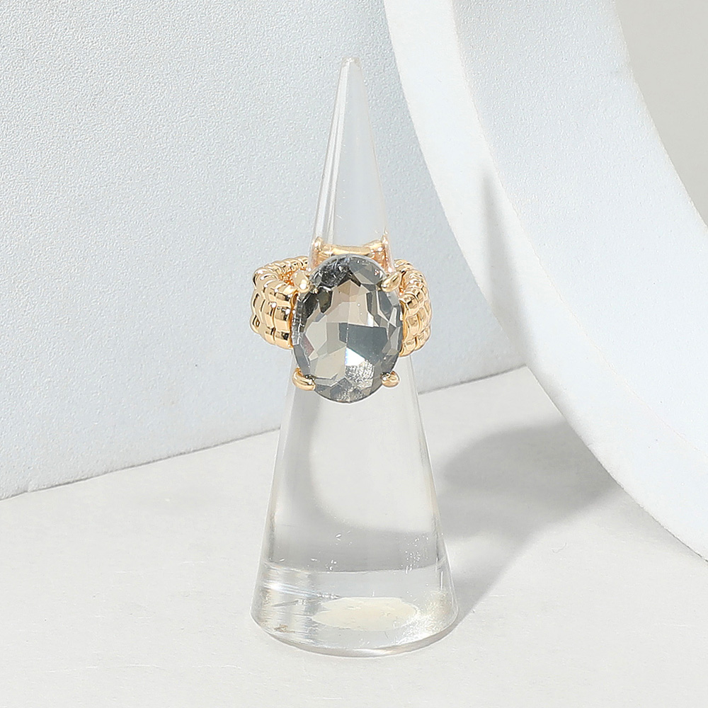 Faceted Oval Stone Cluster Stretch Ring Faceted Oval Stone Cluster Stretch Ring Faceted Oval Stone Cluster Stretch Ring