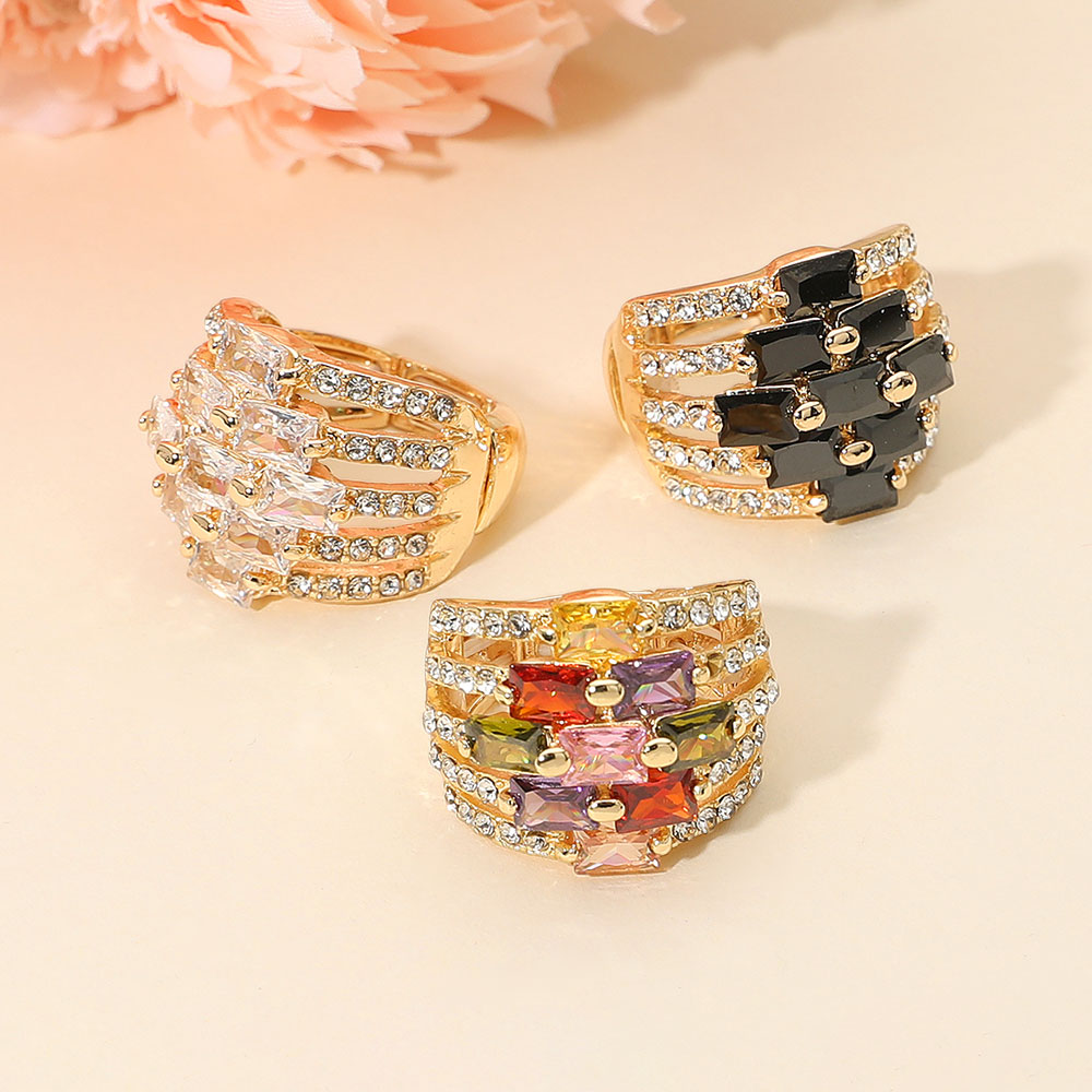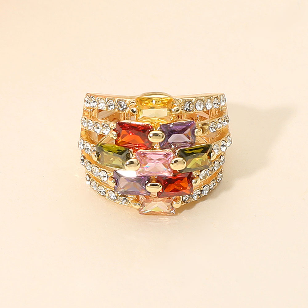 • This geometric crystal stretch ring showcases a bold multi-row design accented with radiant stones for a modern, statement-making appeal. Its flexible fit ensures comfort while adding a luxurious sparkle that enhances both evening ensembles and chic everyday outfits.