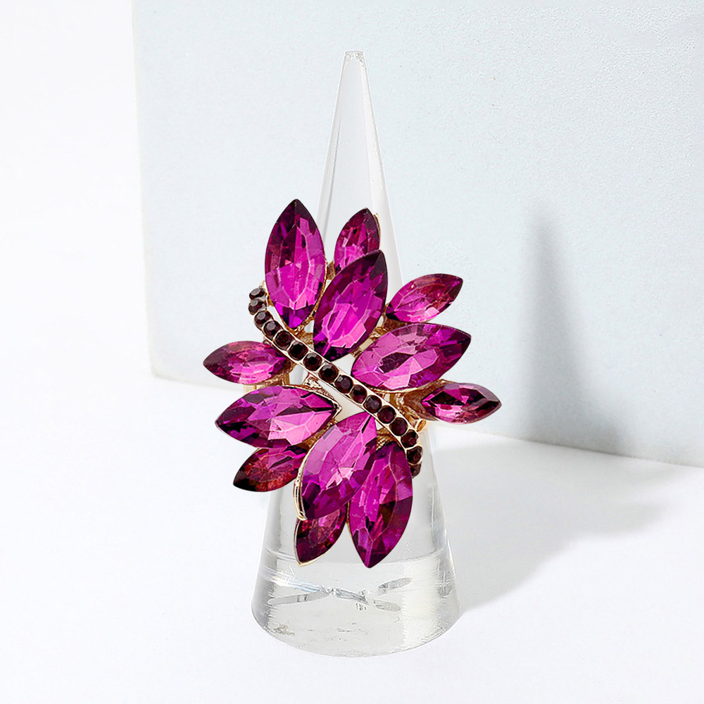 Details • Size : 1" X 1.5" • Stretchable • Shine bright with a statement cocktail ring designed in a striking crystal leaf motif. Featuring multi-faceted stones and dazzling sparkle, this glamorous accessory is perfect for parties, special occasions, or elevating everyday outfits with bold elegance.