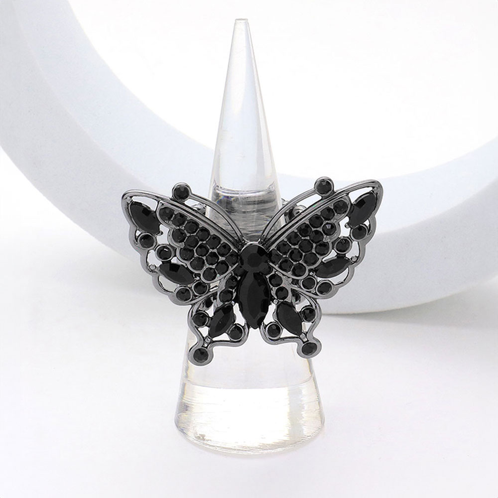 Rhinestone Embellished Metal Butterfly Stretch Ring