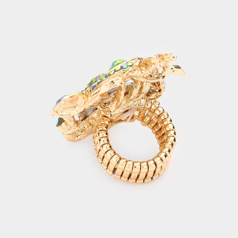 Oval Glass Stone Embellished Rhinestone Paved Flower Stretch Ring