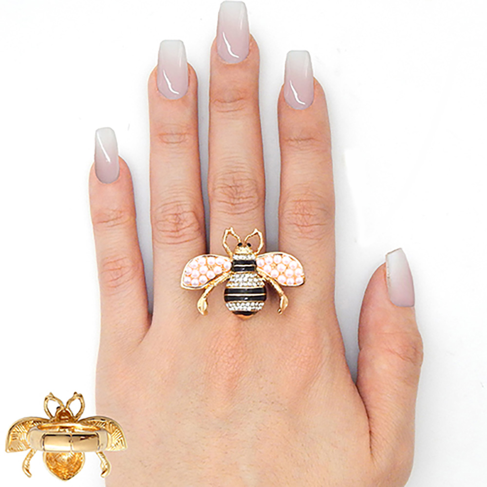 Stone Paved Metal Floral Pearl Charm Station Beaded Chain Bracelet