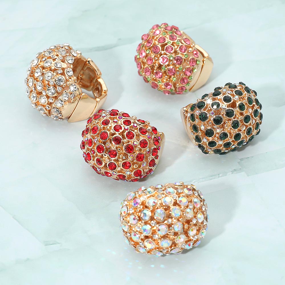 • Turn heads with this pavĂ© rhinestone dome statement ring featuring an allover sparkle design that delivers bold impact with every wear. Comfortable yet striking, it’s perfect for evenings out, celebrations, or gifting, adding confident glamour and standout style to any jewelry collection.