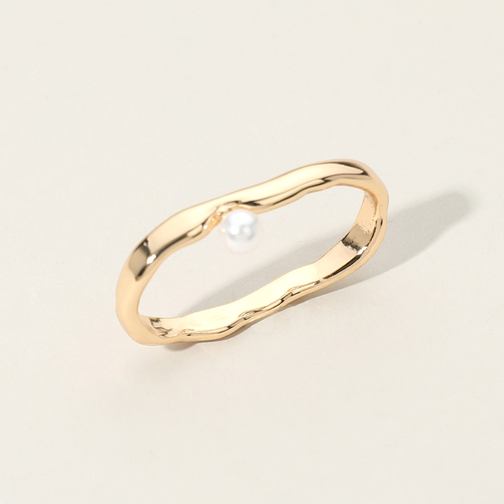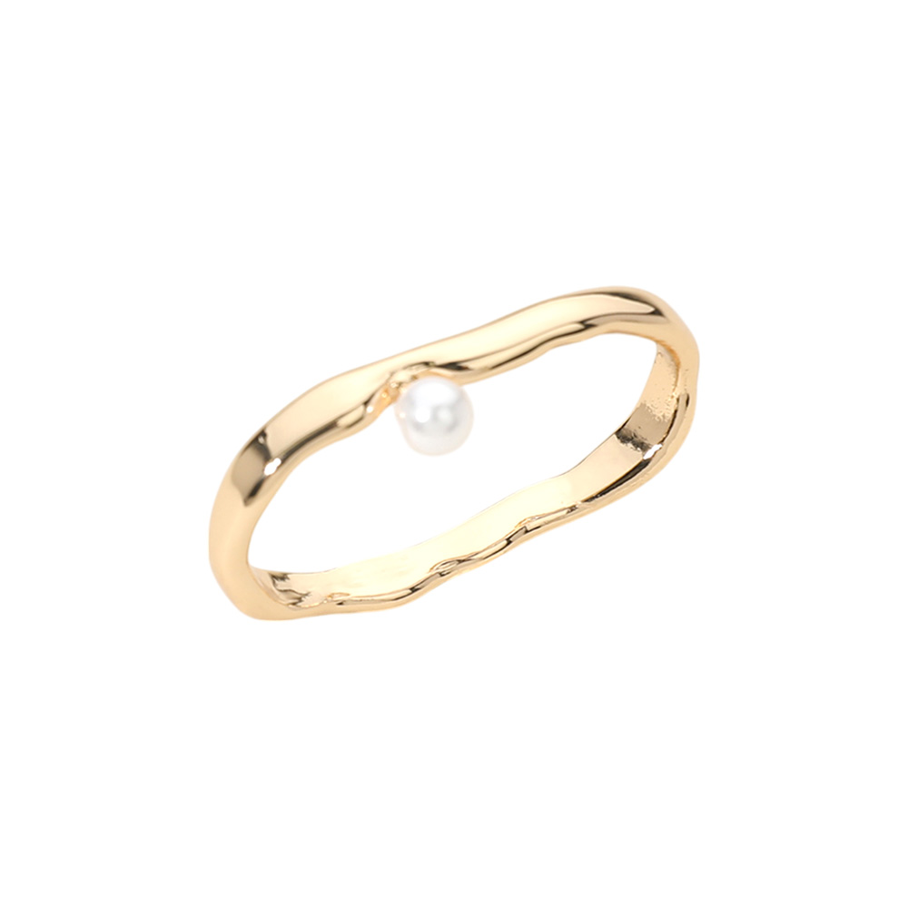 Details • Size : 0.3" H • Adjustable • Elevate your jewelry collection with this adjustable wavy band ring featuring a delicate pearl accent. Its fluid, modern design offers timeless elegance, making it a versatile piece that pairs effortlessly with casual outfits or dressy ensembles. • Gold Dipped