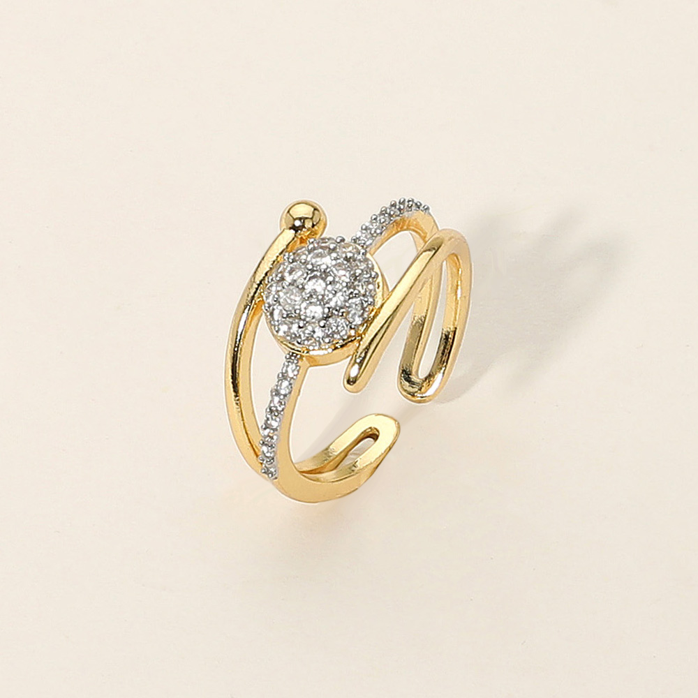 Details • Size : 0.5" H • Adjustable • Unique gold-tone adjustable ring featuring a sparkling pave crystal sphere embraced by an elegant swirl band. A statement accessory that blends modern artistry with timeless glamour for any jewelry collection. • Gold Dipped