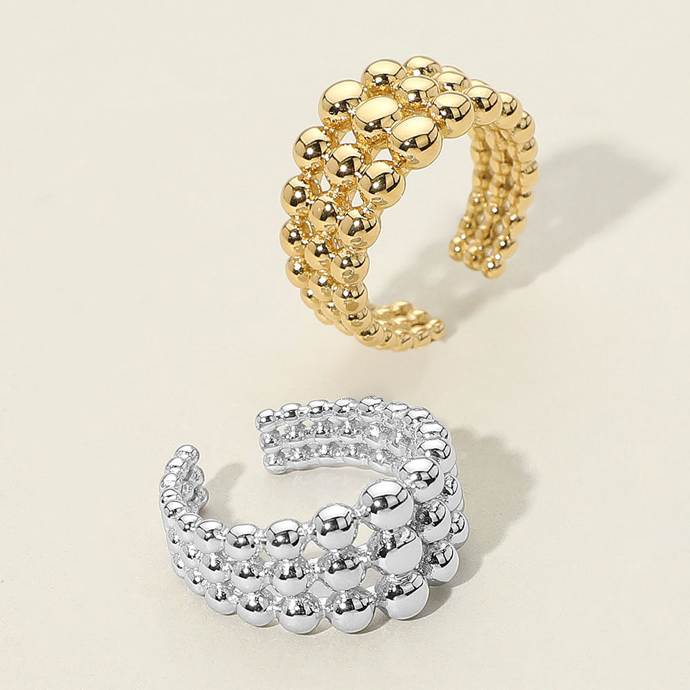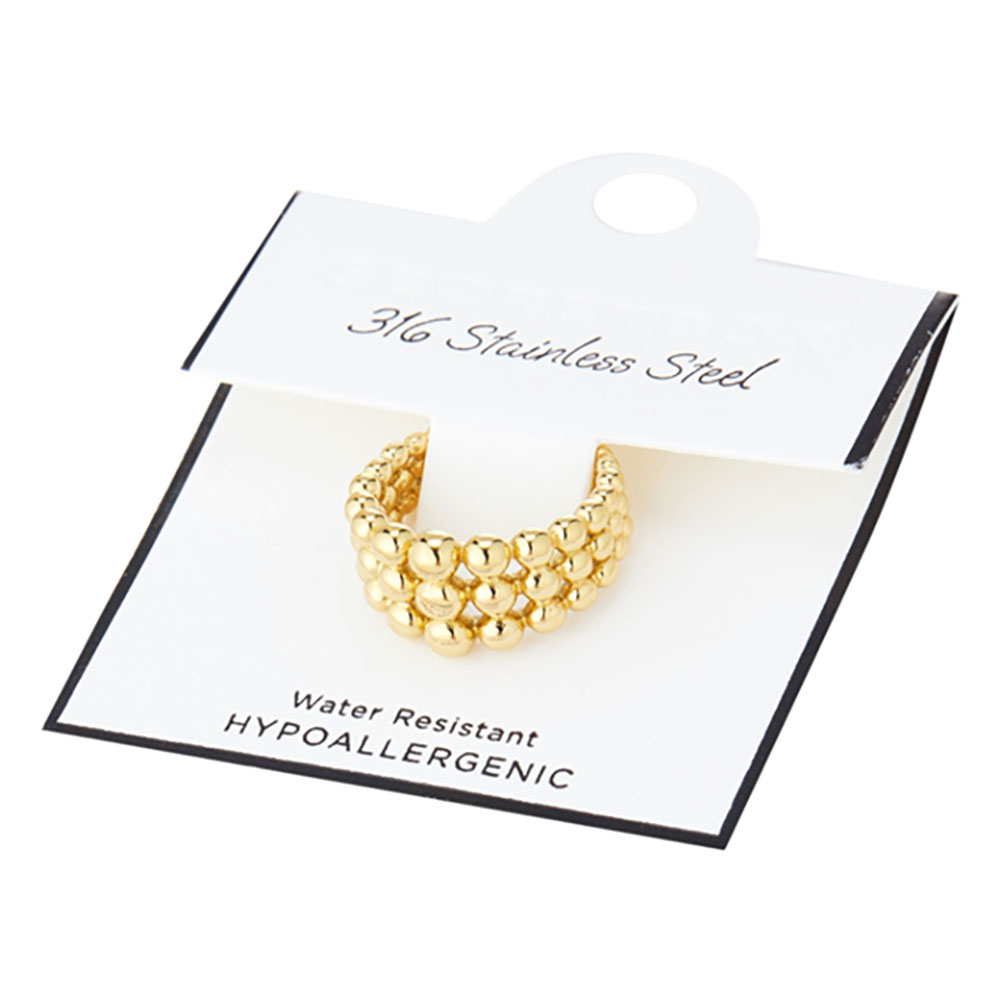 • Modern open ring featuring three rows of polished beads for a bold textured look. Crafted from durable stainless steel, this adjustable piece combines comfort and style, perfect for stacking or wearing solo.