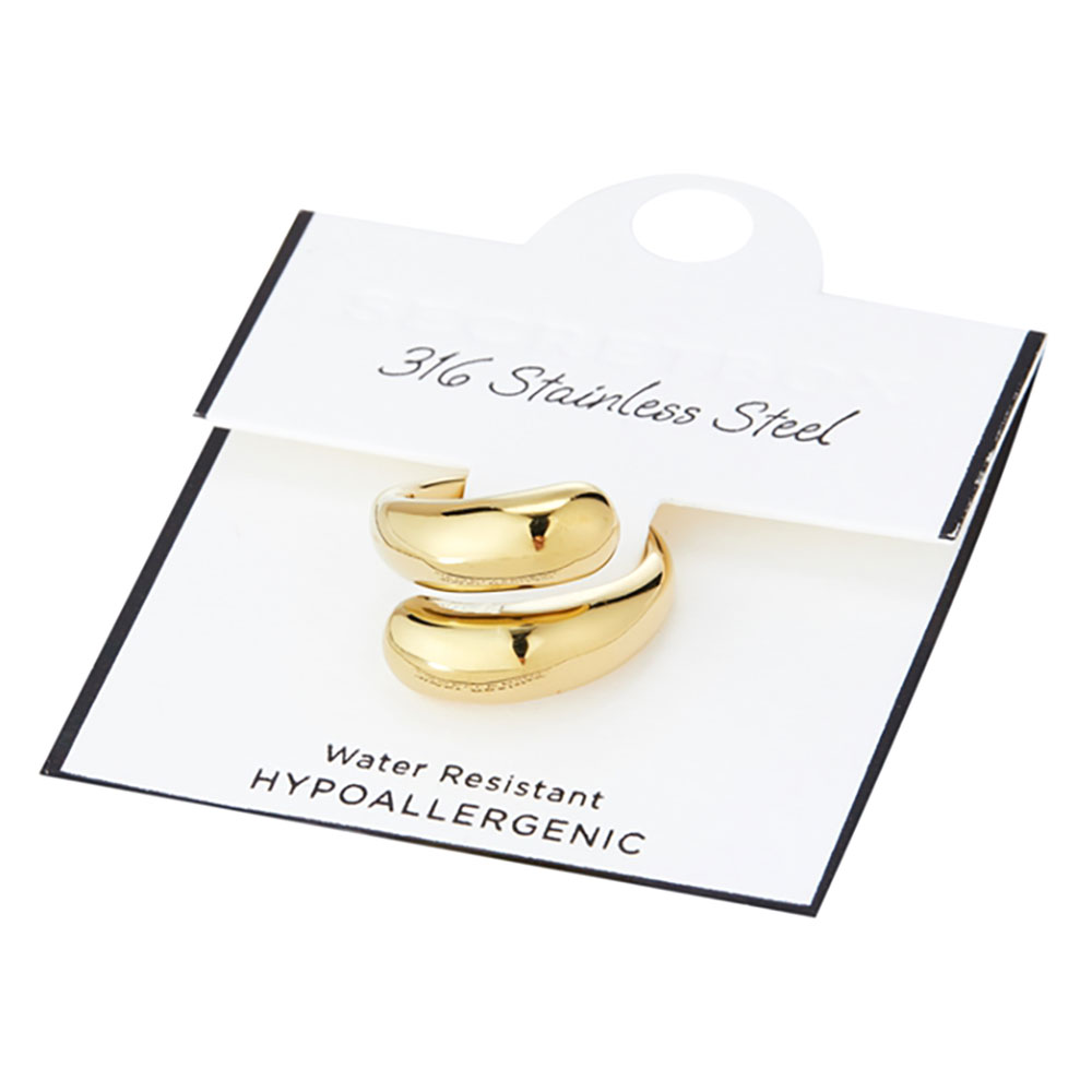 • Sleek and modern stainless steel ring featuring a bold open-front design with smooth curved ends. Adjustable fit for versatile styling, ideal for minimalist looks or stacking with other rings for added flair.
