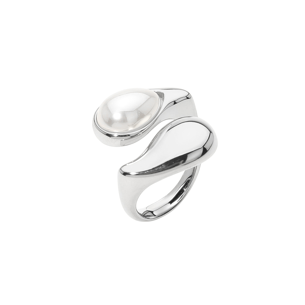 SECRET BOX_Stainless Steel Pearl Dome Accent Wrap Statement Ring