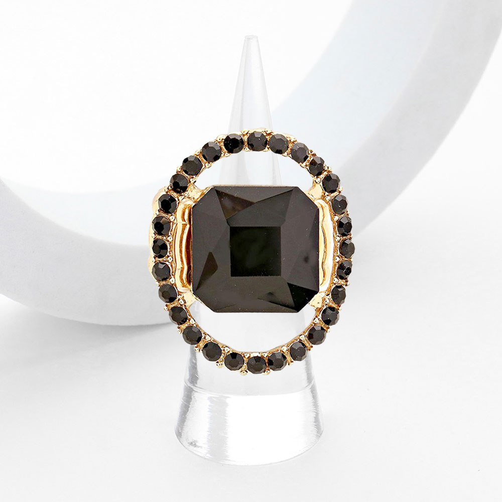 Square Stone Center Rhinestone Paved Rim Stretch Ring