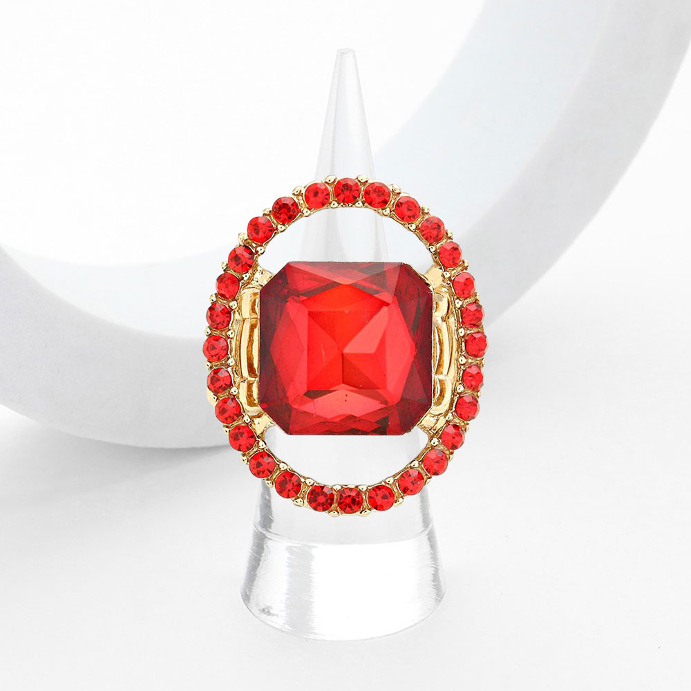 Square Stone Center Rhinestone Paved Rim Stretch Ring Square Stone Center Rhinestone Paved Rim Stretch Ring
