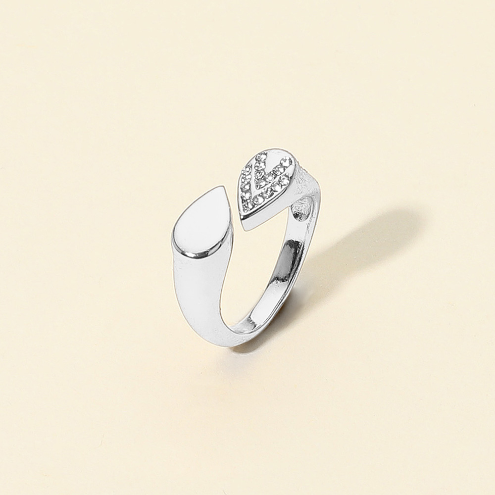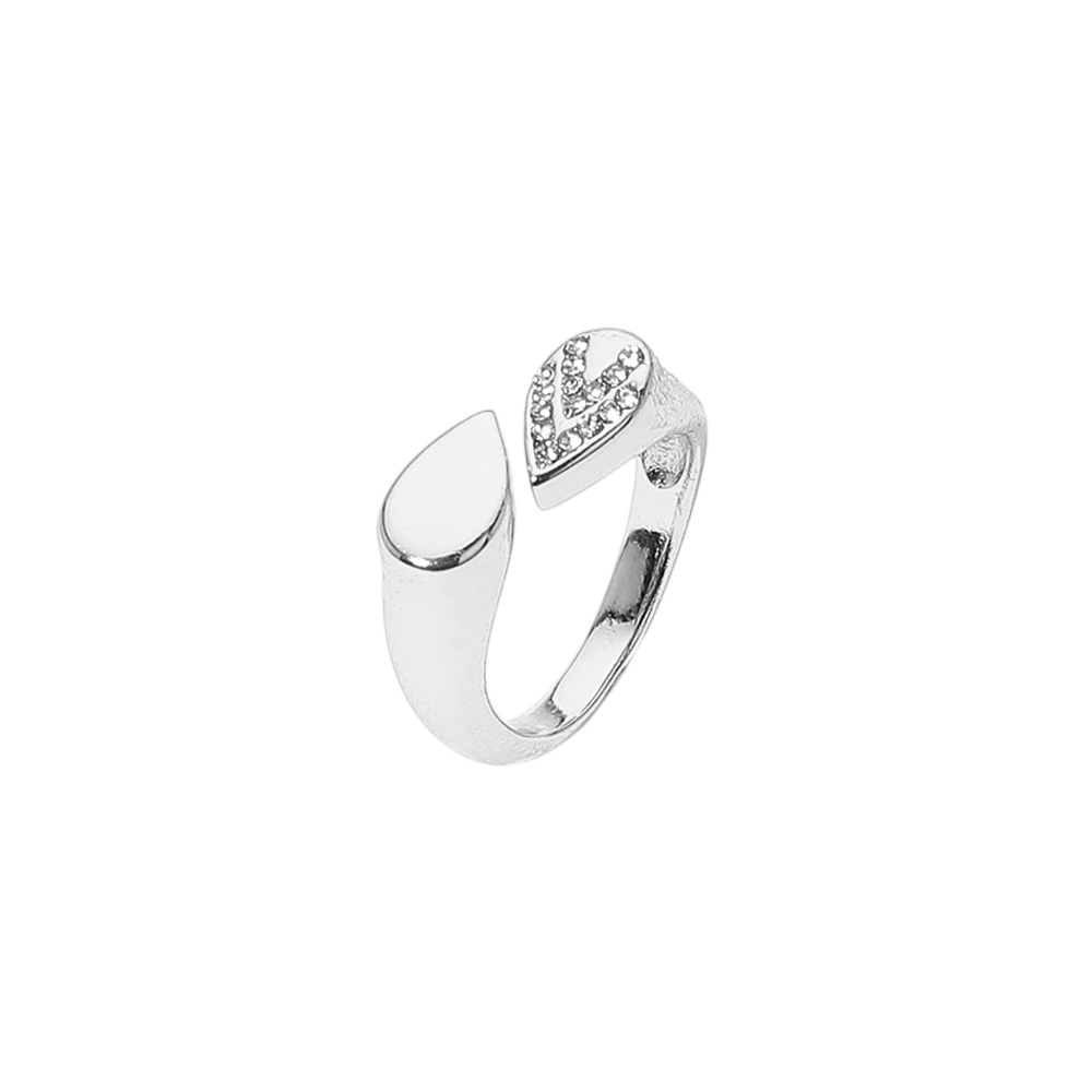 • An adjustable ring featuring sleek teardrop ends, one polished and one accented with sparkling crystals. Its modern yet timeless design makes it perfect for everyday wear or as an elegant finishing touch for special occasions.