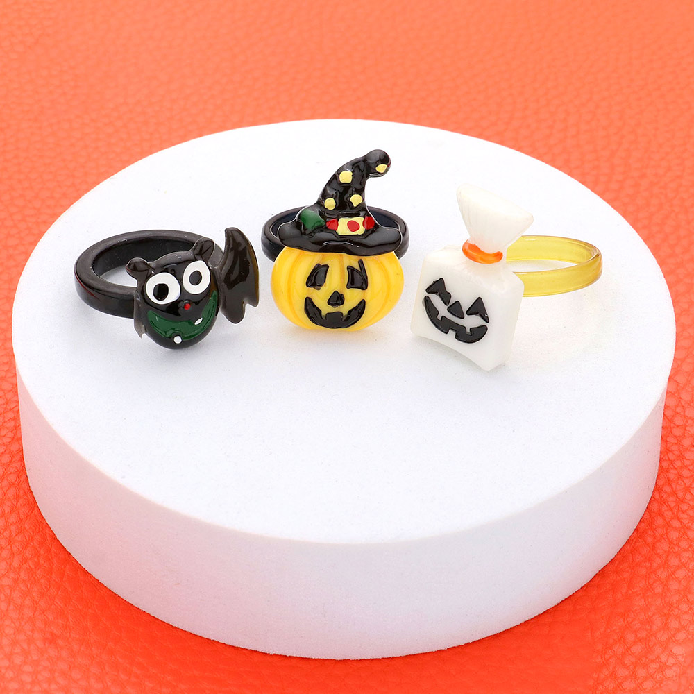 3PCS - Resin Witch Hat Pumpkin Bat Rings