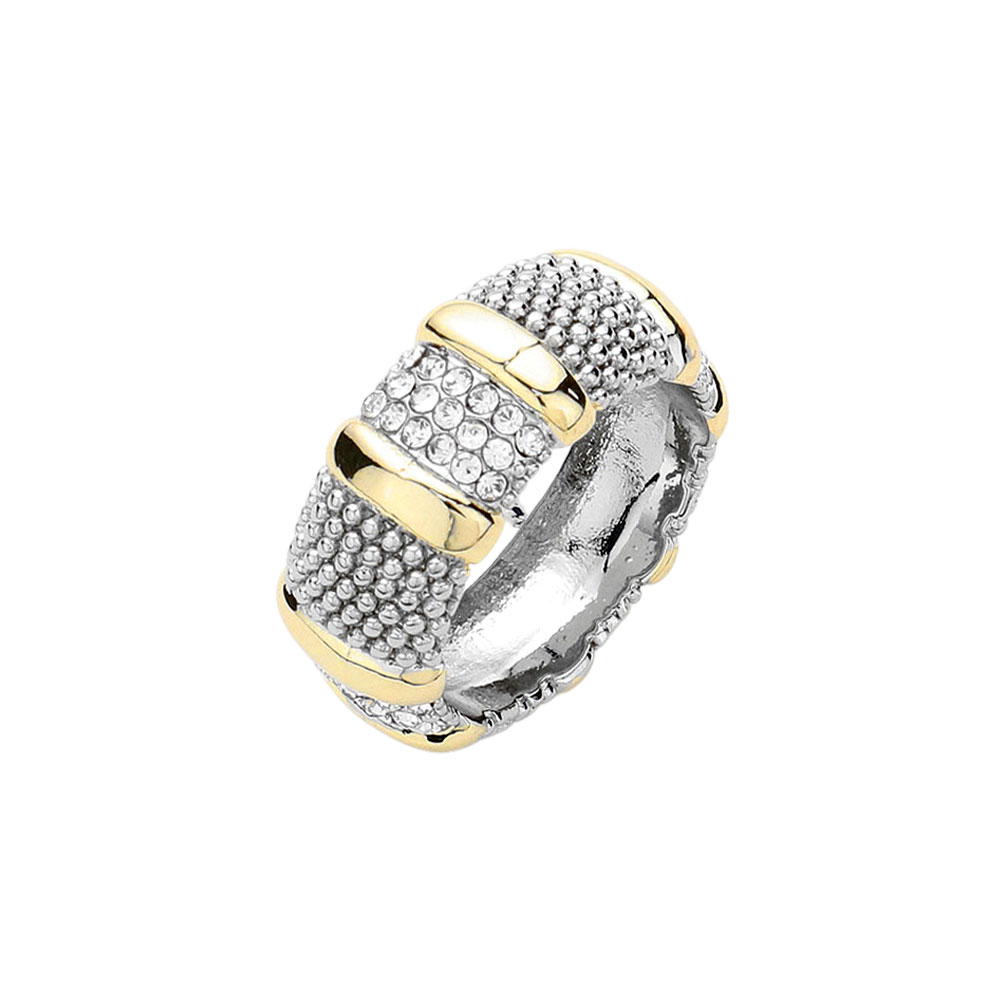 • Stylish wide band ring with shimmering pave texture and bold stripe accents. A statement piece ideal for modern and chic looks.