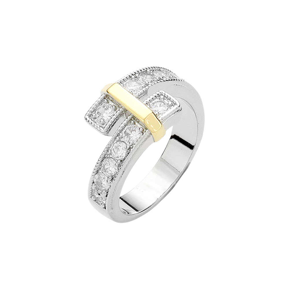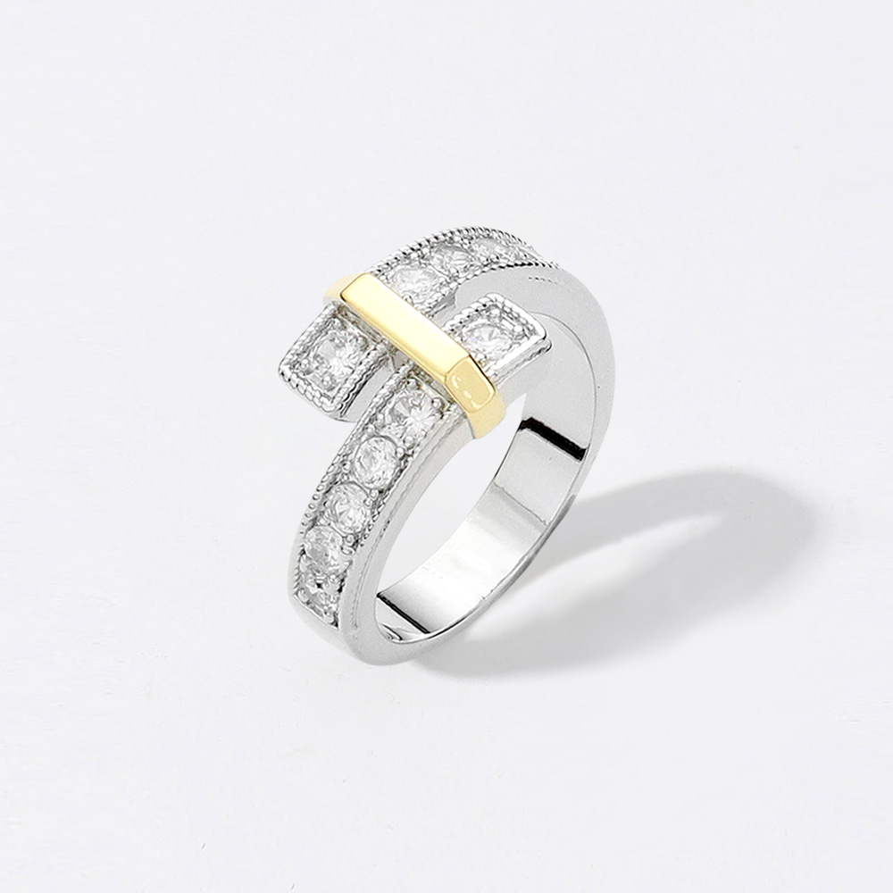 Details • Size : 0.4" H • Modern band ring with a crossover design and sparkling CZ accents. A sleek geometric piece that blends elegance with bold style. • CZ Cubic Zirconia