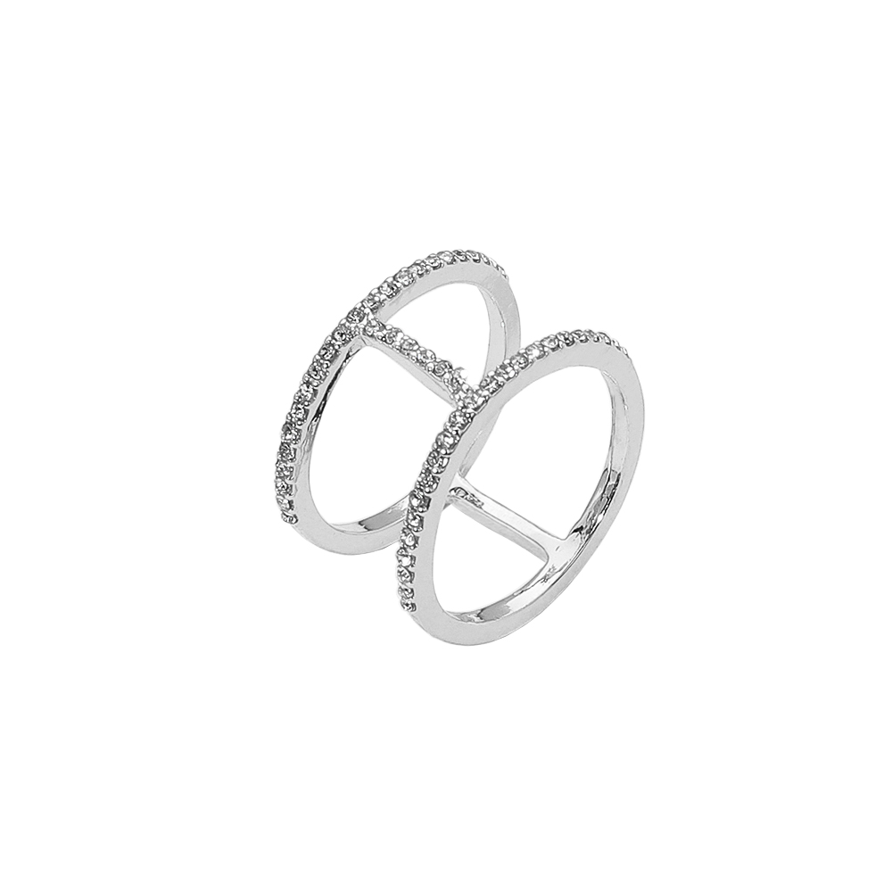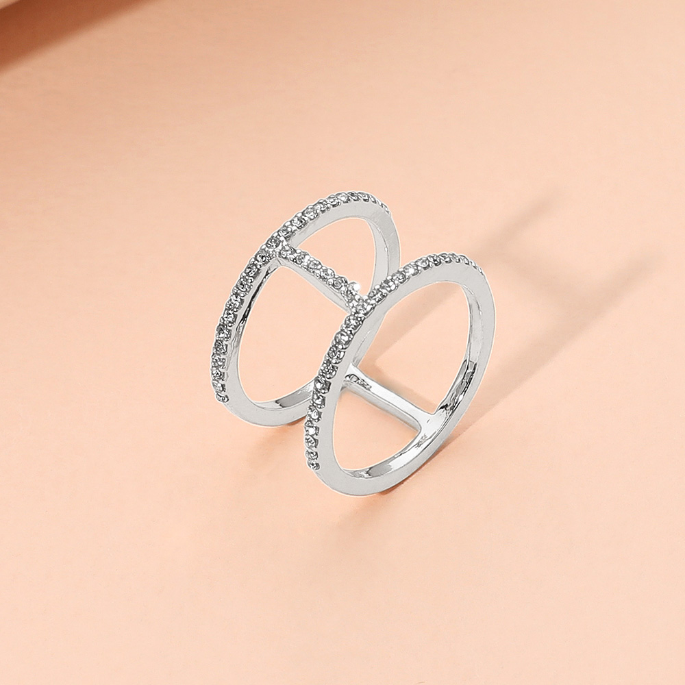 Checkered Pattern Baguette Stone Embellished Chunky Stretch Ring