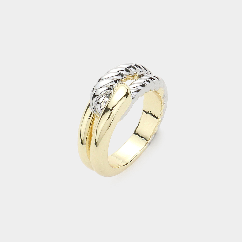 Two Tone Double Metal Ring Link Pendant Faux Leather Cord Necklace