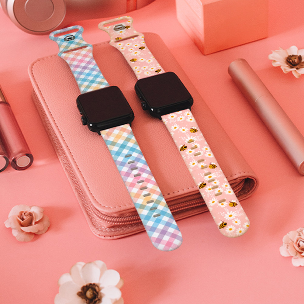 Honey Bee Flower Pattern Apple Watch Silicone Band Honey Bee Flower Pattern Apple Watch Silicone Band