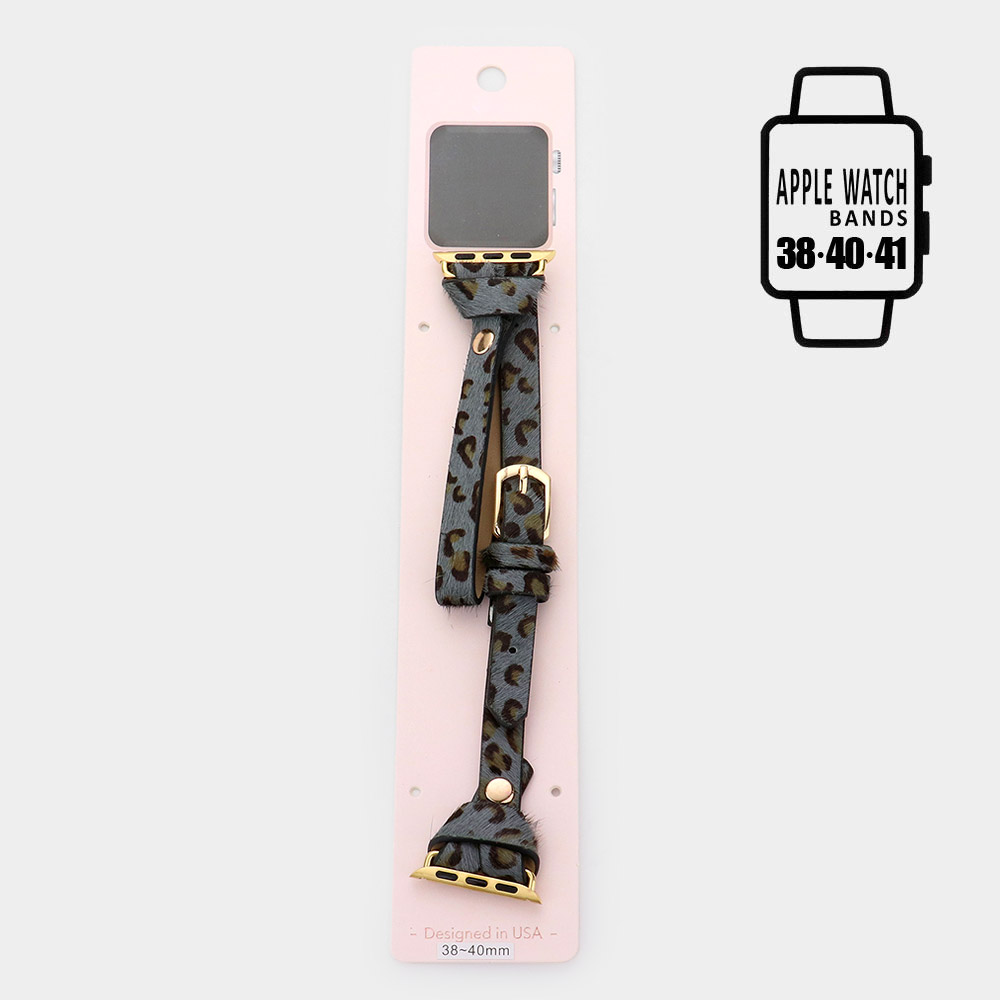 Leopard Patterned Faux Leather Warp Apple Watch Band