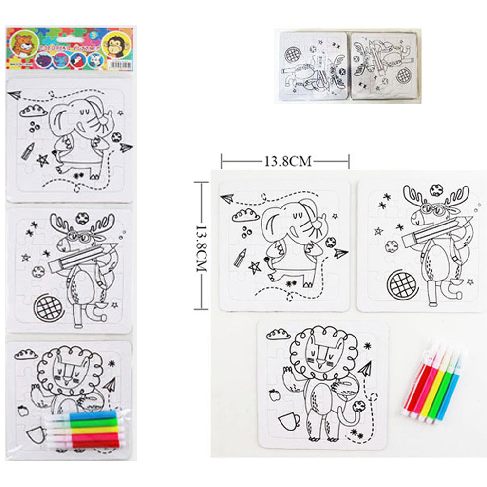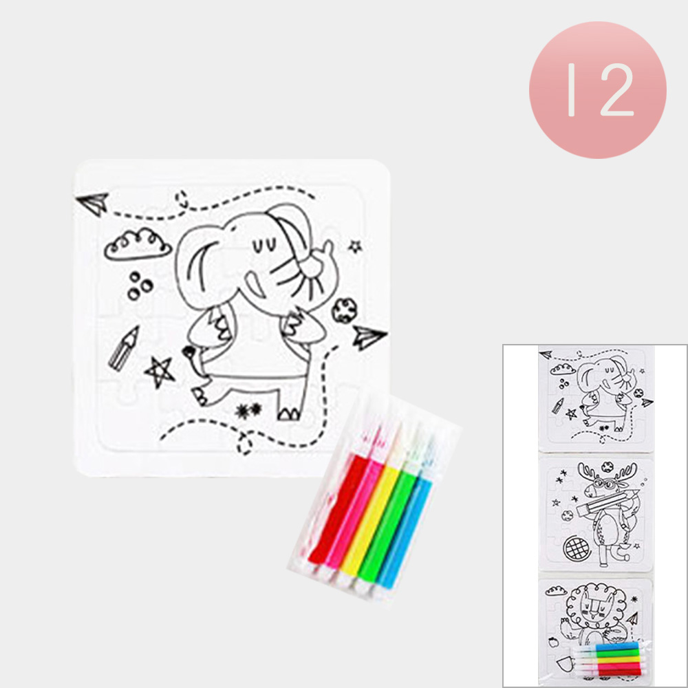 12 Set of 3 - Cute Animal Coloring Puzzle Pen Sets