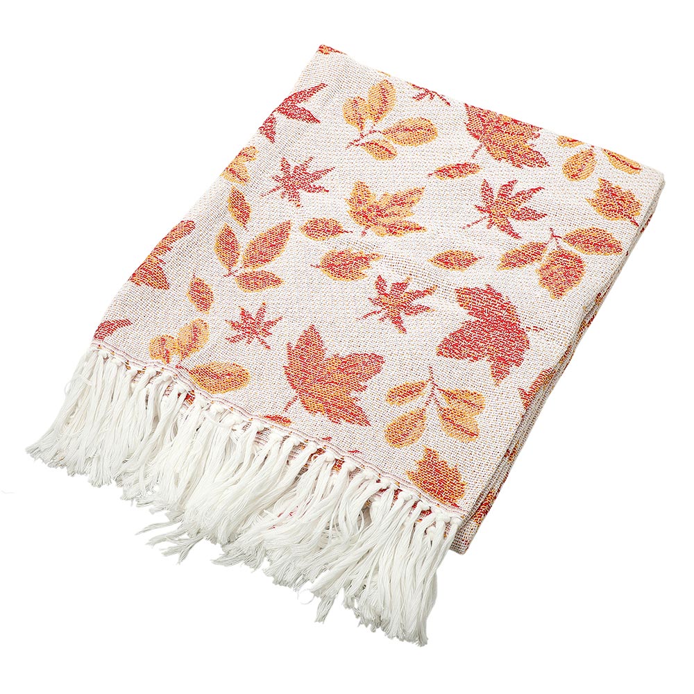 Autumn Leaf Pattern Harvest Collection Fringe Woven Throw Blanket